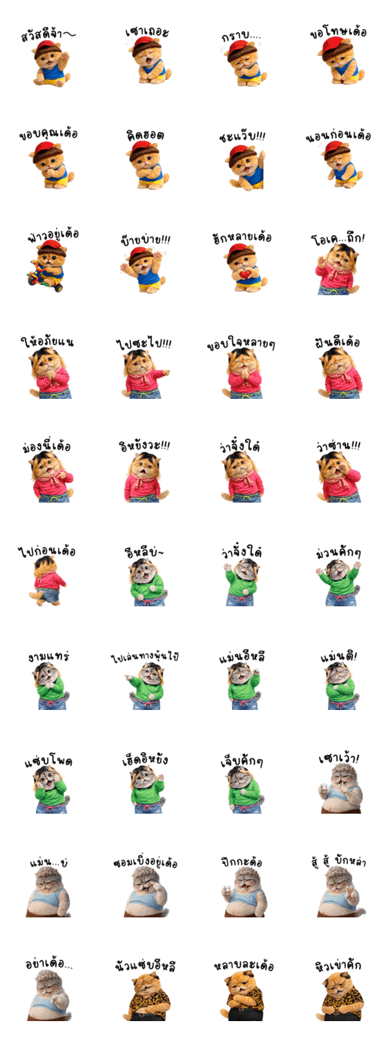 | スタンプ説明 | Fatcat Bigcat Baan Som Poi is a sticker set of chubby Isan cats using simple gestures to express hunger, teasing, confusion, and missing someone. |