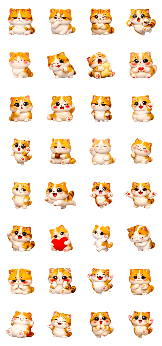 | スタンプ説明 | cat, cute cat, orange cat, chubby cat, kawaii cat, 3d cat, cartoon cat, cute sticker, funny cat, adorable, emoji style, chat sticker |