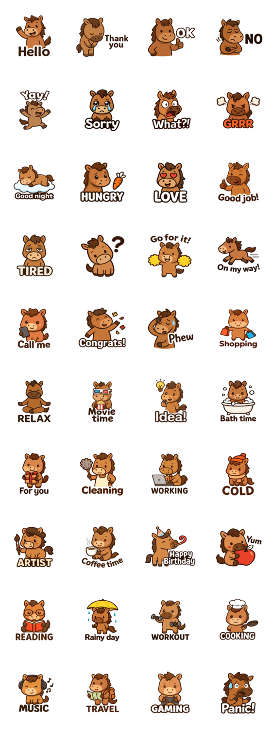 ゆるくてかわいいお馬さんが、挨拶や感謝、ちょっとした気持ちをやさしく伝えます。使うだけで会話が和らぎ、毎日の連絡や大切な人とのやり取りに気軽に使えるスタンプです