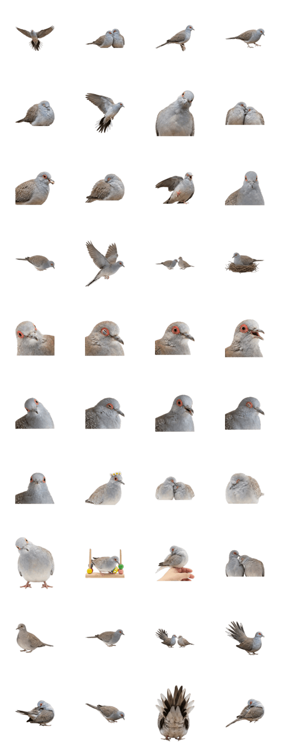 鳩 野鳥 淡い色 羽毛 かわいい 自然 生き物 写真風 リアル ナチュラル 癒し系 観察 人気 鳥スタンプ LINE トーク 使いやすい はと ハト とり ペット ※このスタンプはトークルームで大きく表示されるBIGスタンプです。