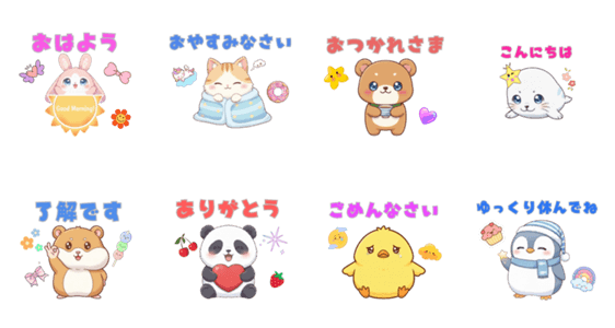 | スタンプ説明 | Even when were apart, these cute animals are here to deliver my love. |