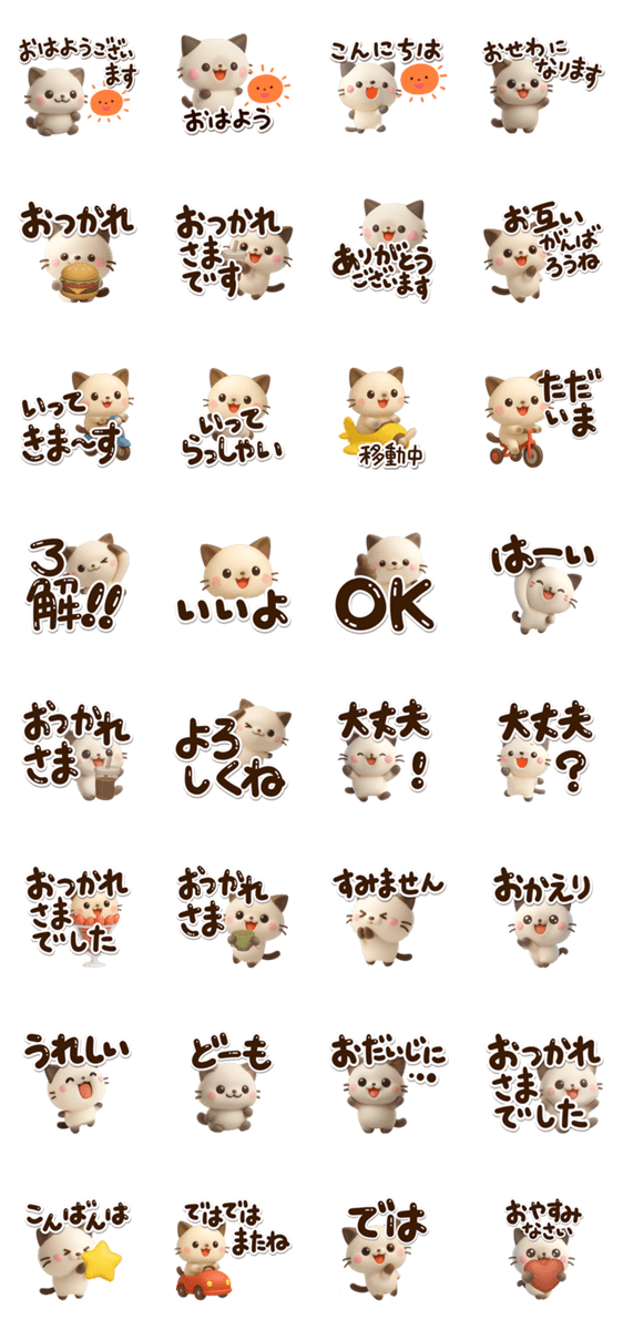LINEマンガやKindleマンガの『ちびネコ』の『ちびシャム』。しゃむねこの太字でシンプルな3Dドールスタンプ。かわいいラグドール等の猫好きの方にぜひ。【かたこ】