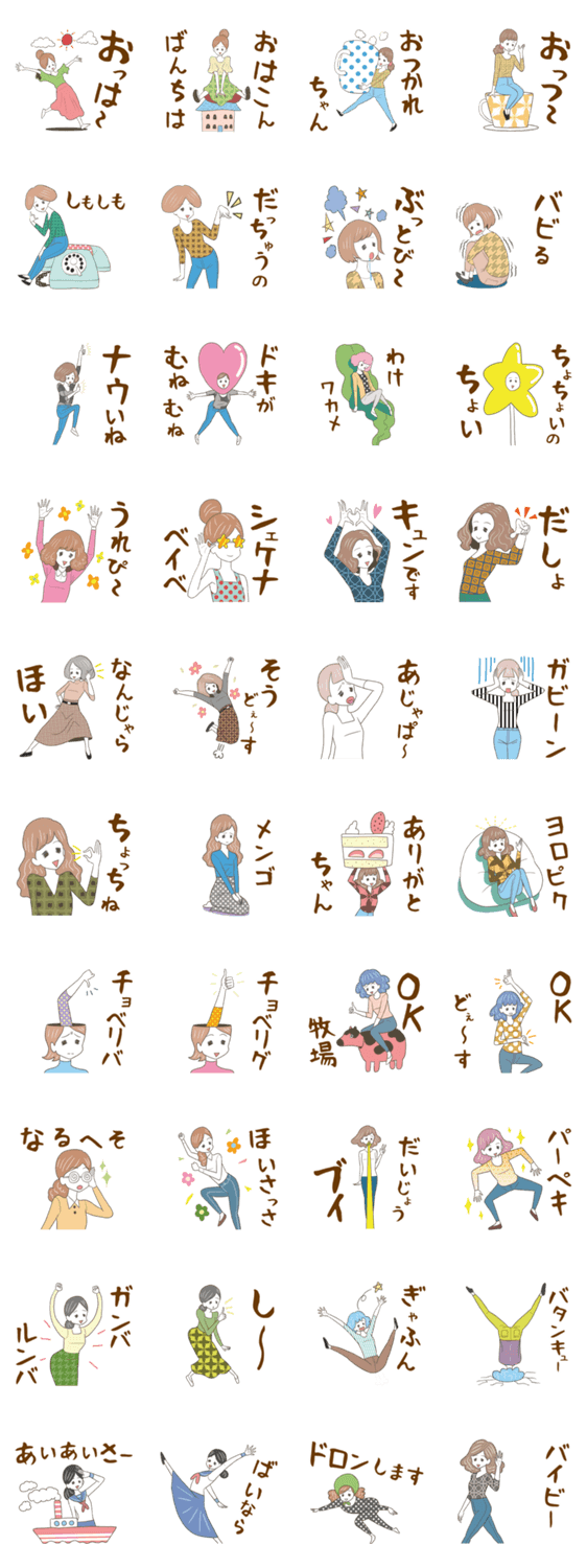 淡いレトロ女子ぃず5【死語】 -LINEスタンプマニア