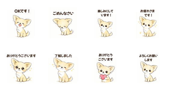 | スタンプ説明 | A set of gentle Chihuahua stickers that softly express everyday feelings. Easy to use without words, perfect for greetings, replies, and gratitude. |