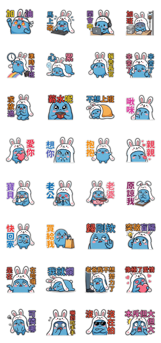 Cutest Blue Bao Bunny stickers for office life, sweet couples, and funny memes. Express your feelings with this lovable bunny and make your chat fun!