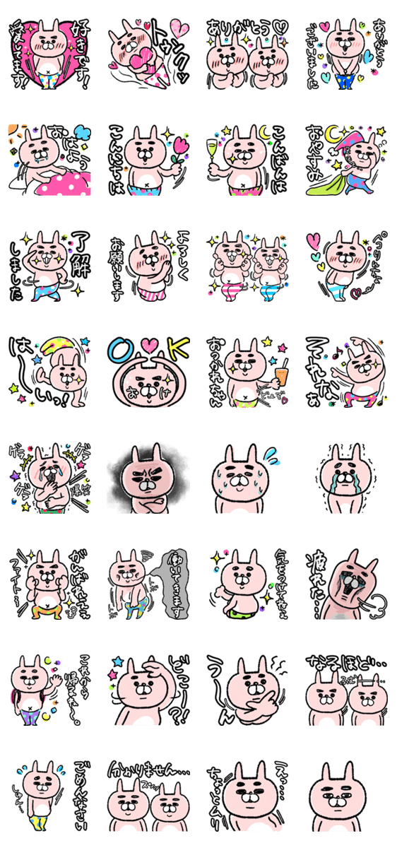 ぶっとい眉毛にメタボが特徴のうさごんがあなたのtalkに癒しと笑いを…♥wwうさぎ/家族/友達/仕事/挨拶/夫婦/ママ/パパ/日常/連絡用/シュール/カラフル/ビビット/ギャグ