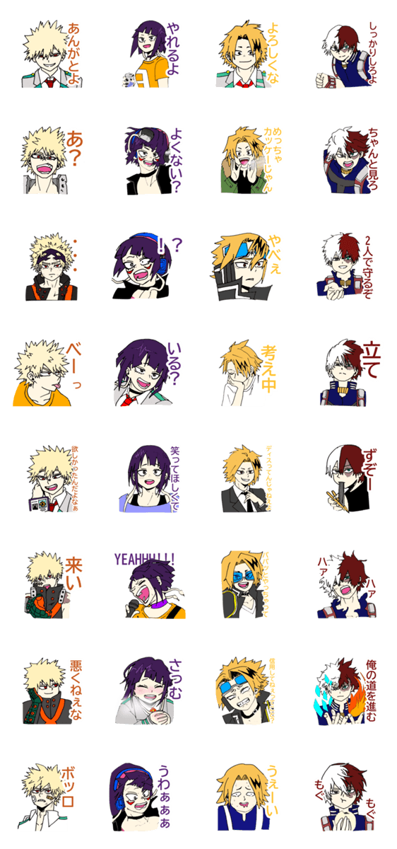 僕のヒーローアカデミア/ヒロアカ/爆豪勝己/かっちゃん/耳郎響香/ジローちゃん/上鳴電気/轟焦凍/手描き/読み込み/アイビスペイント/挨拶/セリフ/挨拶/使いやすい ※LINE Creators Collaboration 僕のヒーローアカデミア参加スタンプです。