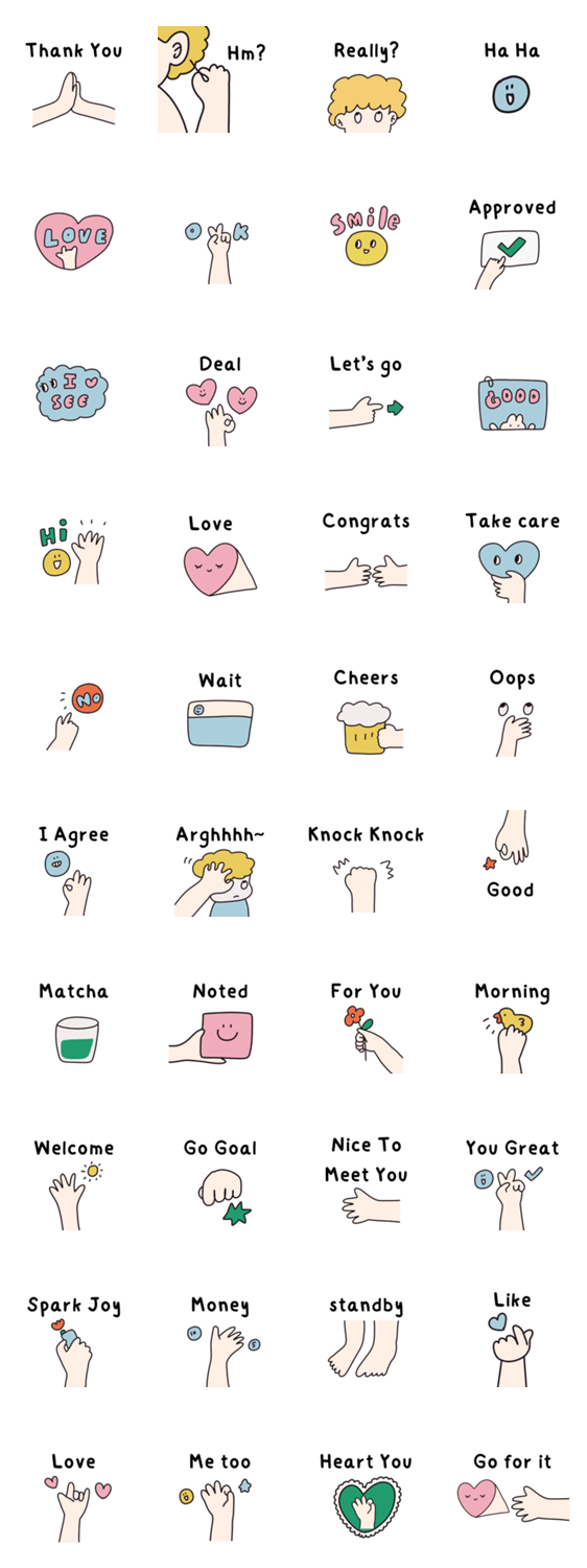 Hand doodle stickers with simple text. Fun, casual, and easy to use for chats.