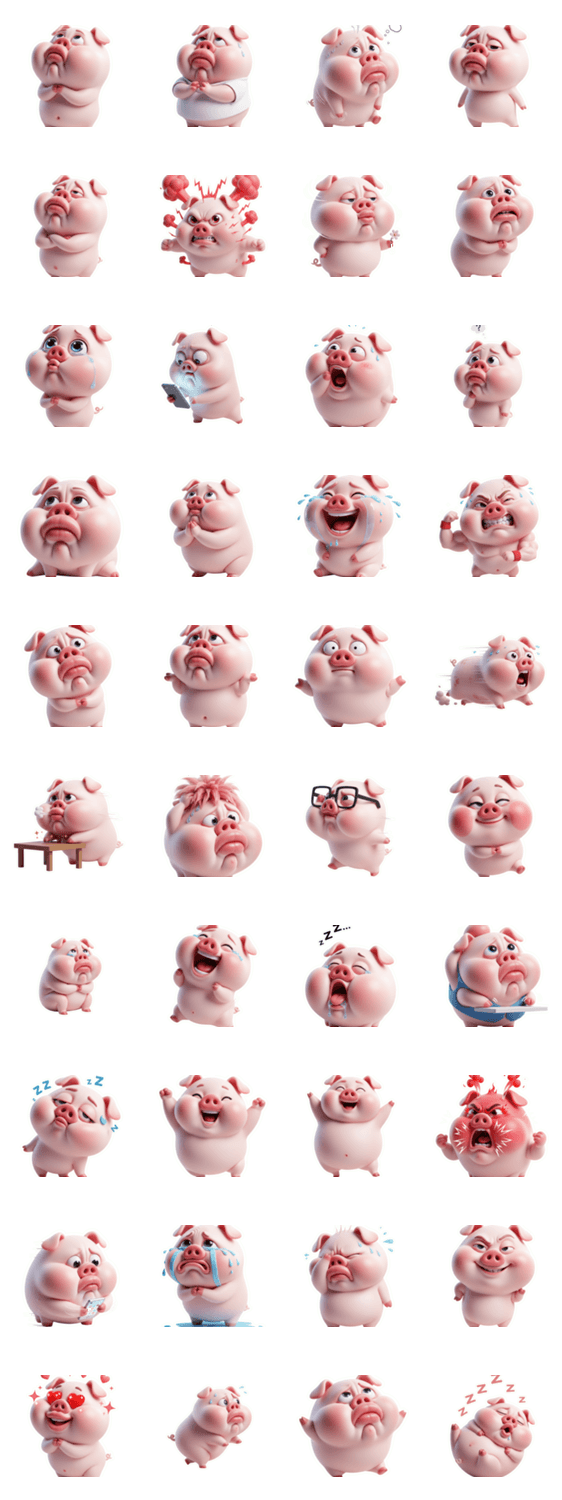 困惑、戸惑い、そして可愛さ満点!ぶちゅっとした口元が特徴のキュートなピンクのブタが登場。ちょっとした疑いの気持ちや、大袈裟な愛情表現をしたい時にぴったり。会話を