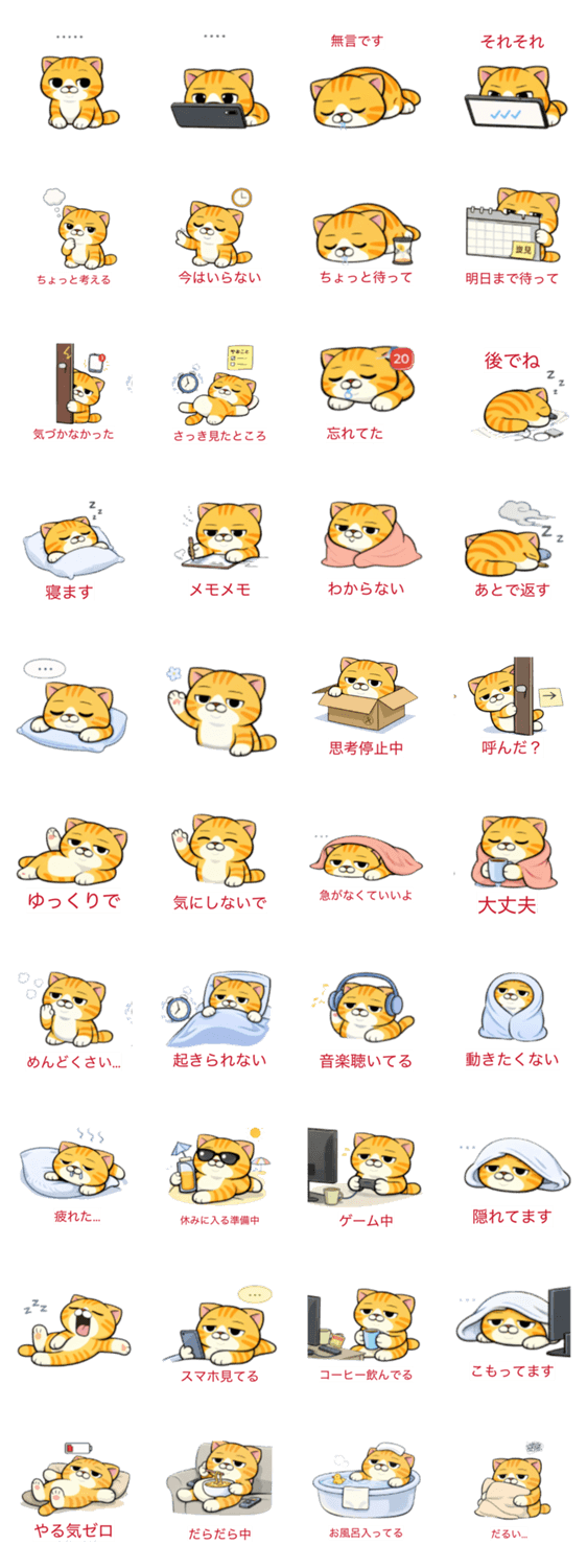 すぐに返事できない時に何て返せばいいか迷う時。そんな「間」をつなぐための既読スルー・放置気味ねこスタンプ。友だち・家族・職場のやりとりにも使いやすい日常スタンプ