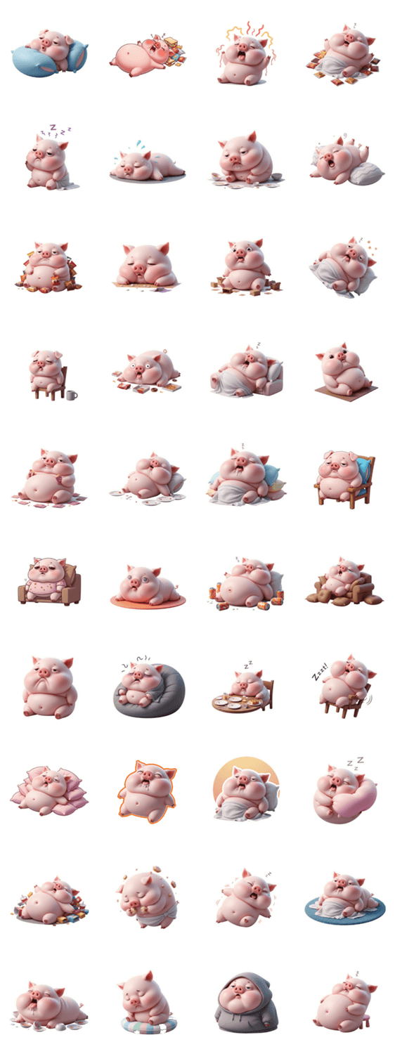 | スタンプ説明 | 日曜日こそ、堂々と「ぐうたら」しましょう!このピンクのブタちゃんは、週末の最高の過ごし方を熟知しています。ベッドからソファまで、すべてを悟ったような表情で、あな |