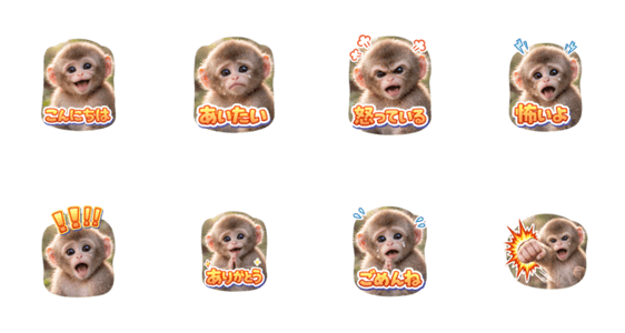 かわいい赤ちゃん猿のLINEスタンプ。笑顔・怒り・驚き・泣き顔など感情たっぷりでトークをかわいく盛り上げます!