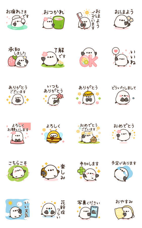 シマエナガ好きさんにおすすめ♪春モチーフ多めの、毎日使える便利でかわいいスタンプがたくさん入ったセットです![春・連絡・気づかい・感謝・癒し・日常挨拶]