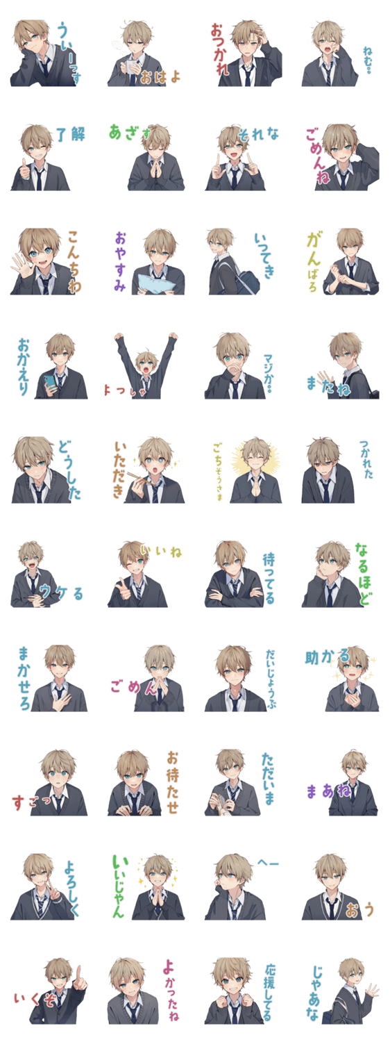 茶髪の男子高校生スタンプ!よく使う言葉でまとめました/挨拶/日常/毎日/使える/友達/家族/恋人/男子/学生/DK/ゆるい/ほのぼの/かわいい/推し/普段使い