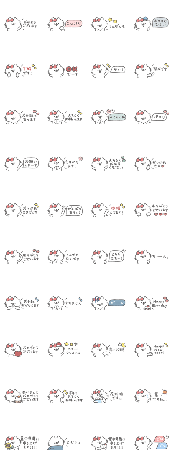 白ネコのあいうえお・・・ってるスタンプ