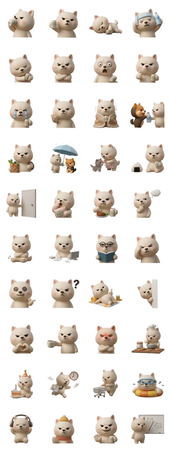 | スタンプ説明 | アシンさんが描いた「七つの小さなカラフルな柴犬」の一人、「白ボス」の3DモデルをAIで生成してください。 |