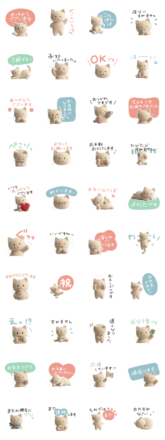 敬語でゆるっとやさしく伝えます。ママ友や会社での連絡用に♪ 丁寧/毎日/日常/挨拶/仕事/お礼/気遣い/猫/ぬいぐるみ/シンプル/大人/かわいい/北欧/パステル/くすみ