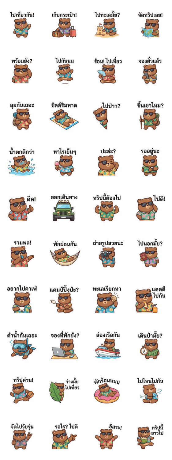Get ready for summer with this chill brown bear! Wearing cool sunglasses and vibrant Hawaiian shirts to brighten your daily chats.