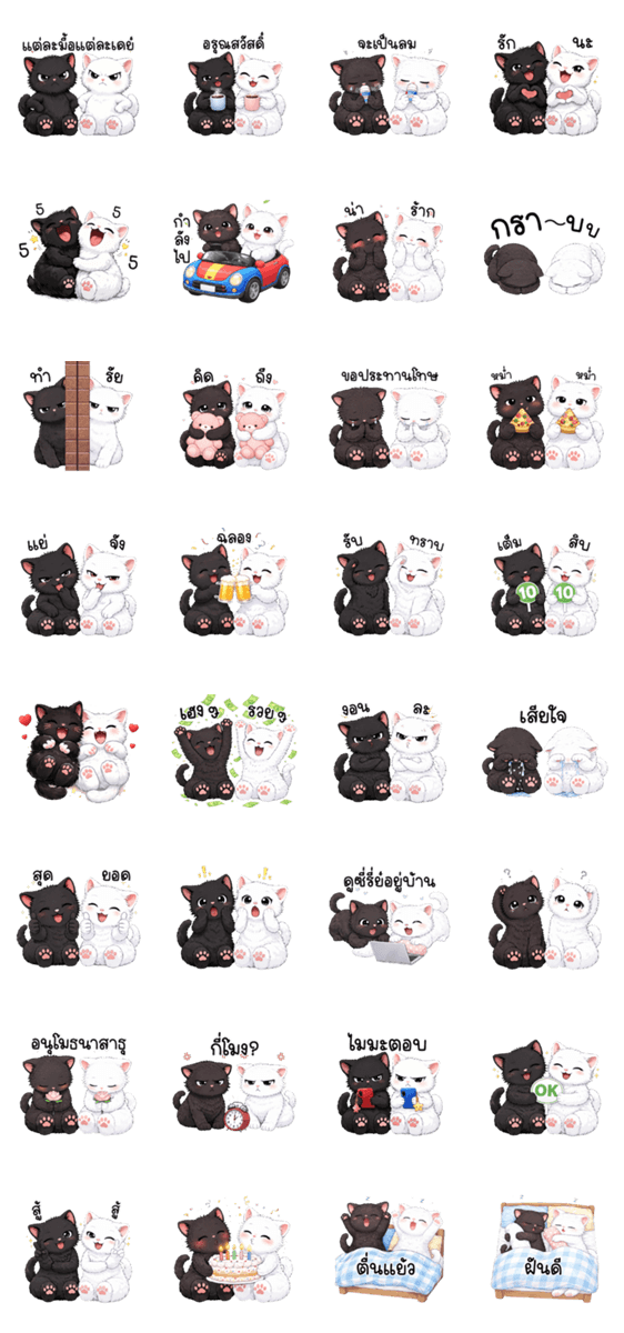 Cute black and white twin cats -LINEスタンプマニア