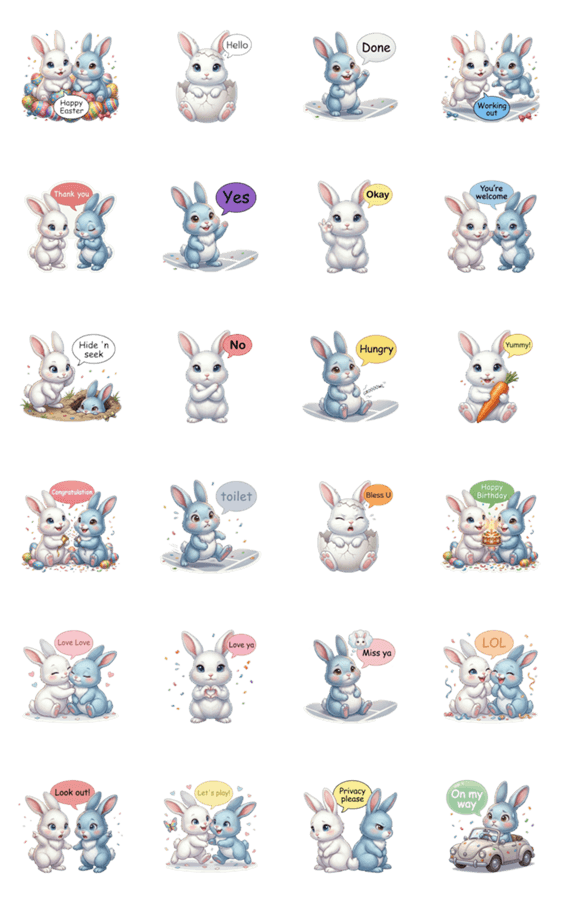 The cute fluffy bunny friends, PearlWhite & BlueSky. They cannot wait to celebrate their Easter day.