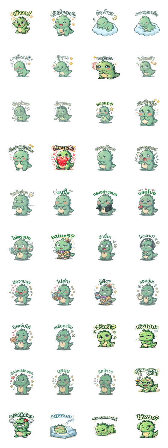 | スタンプ説明 | A cute little dinosaur full of playful charm. Perfect for daily chats with friends, lovers, or family to make your chats more fun. |