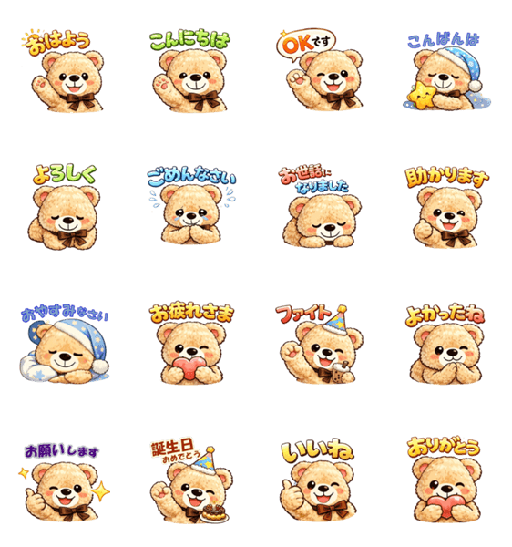ぬいぐるみのクマのイラストスタンプ -LINEスタンプマニア