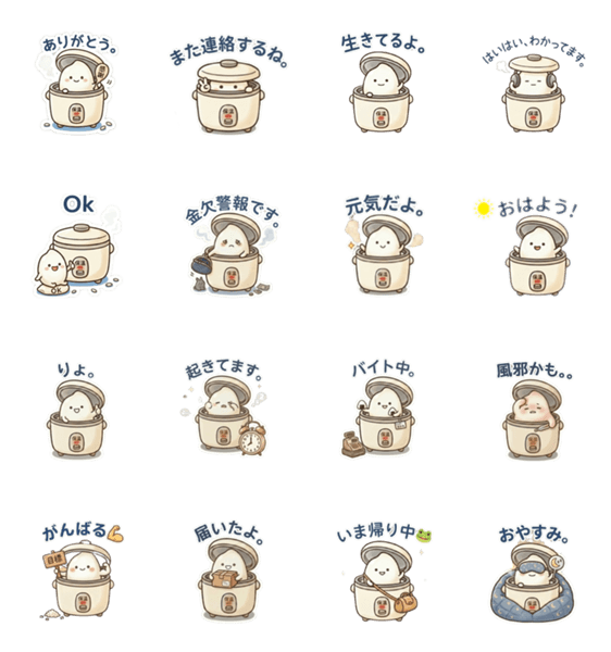 心配症なママへ、実家を離れて頑張る一粒の米「ほか丸」があなたの代わりに生存報告。忙しい時も、おねだりしたい時もこれ一粒でOk!ママへのゆる〜い返信用スタンプです。