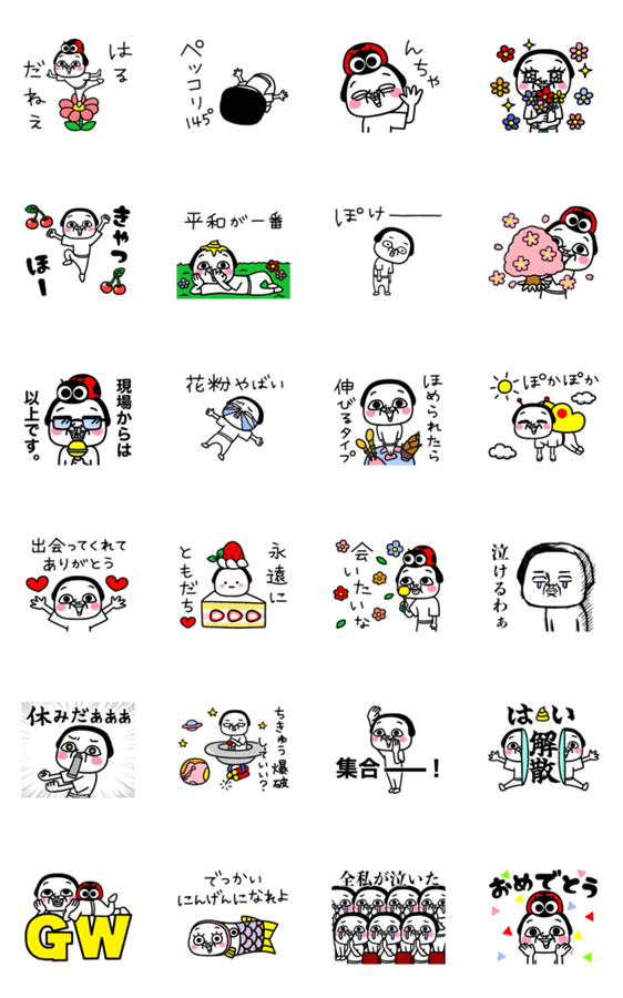 マイペースに生きる人々のためのシュールで自由なナンセンスなスタンプ!春満載なのんびりシュールなスタンプです♪