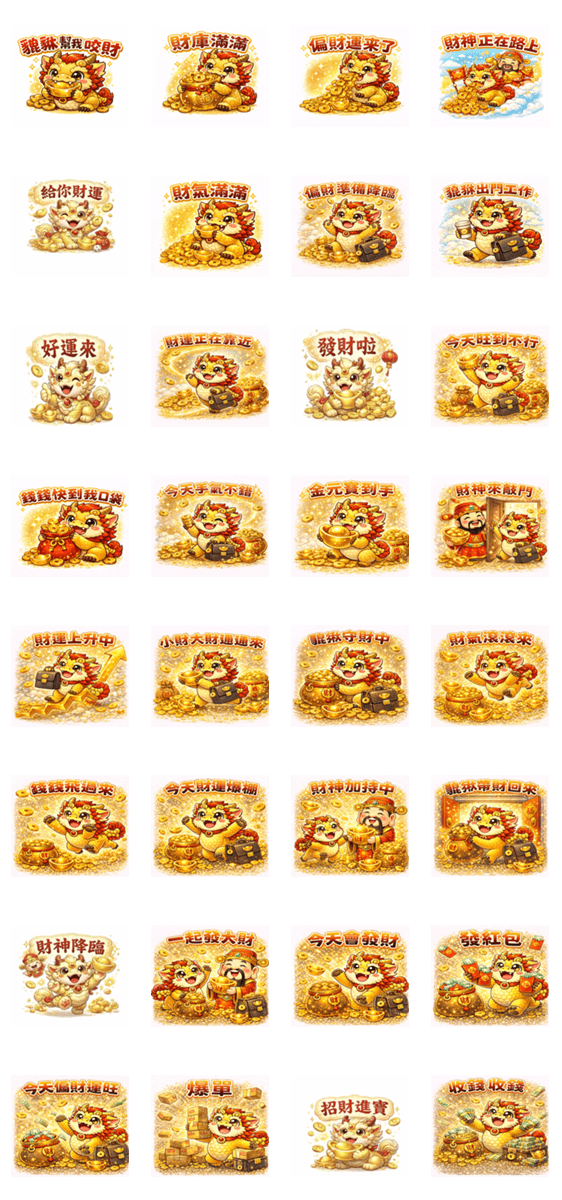 | スタンプ説明 | Cute Pixiu stickers that bring good luck and wealth. Get rich together every day! |