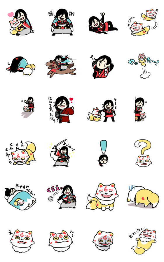 和泉守兼定とこんのすけのかっこいいスタンプです。 ※LINE Creators Collaboration『刀剣乱舞ONLINE』参加スタンプです。
