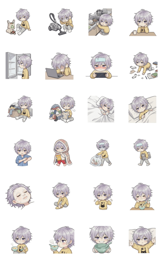 熱.蕁麻疹.メンタル不調.体調不良(銀髪) -LINEスタンプマニア