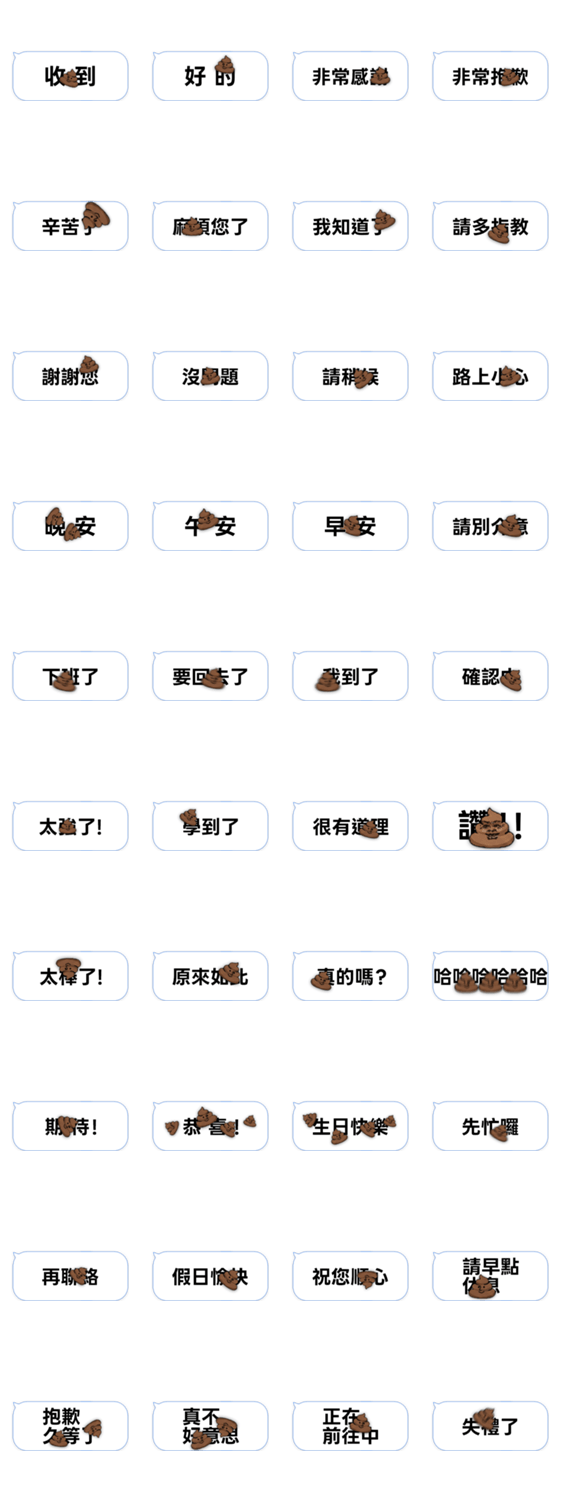 | スタンプ説明 | 雖然文字是非常正經且有禮貌的敬語,但那個褐色的傢伙真的很礙眼。適合想要裝正經又想開玩笑的朋友!請享受這份莫名其妙的趣味/日本在住台湾の方へ/省スペ/うんこ/シュール |