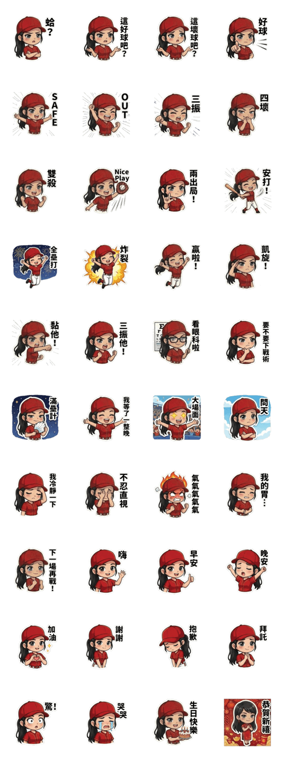 | スタンプ説明 | When watching a baseball game, she is usually in these kinds of states. |