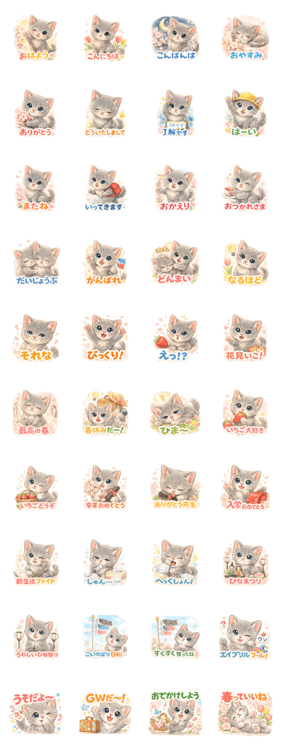 シアンブルー子猫の毎日あいさつ 40種 春
