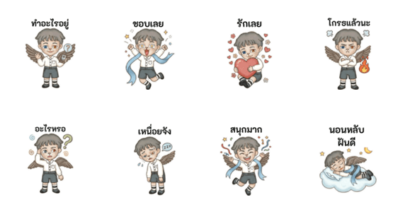 | スタンプ説明 | Cute heterochromia boy with wings! 9 expressive stickers with Thai captions. Perfect for daily chats. Unique, adorable, and fun! |