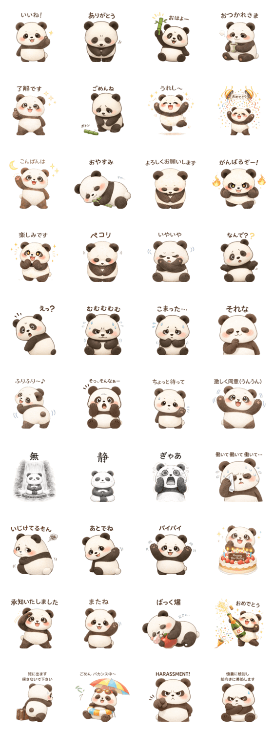 | スタンプ説明 | ゆるくてかわいいパンダ「さいちゃん」の日常スタンプです。 和歌山・白浜で生まれた“浜家”のさいちゃんをイメージしたやさしい雰囲気でゆるっと気持ちを伝えます。 |