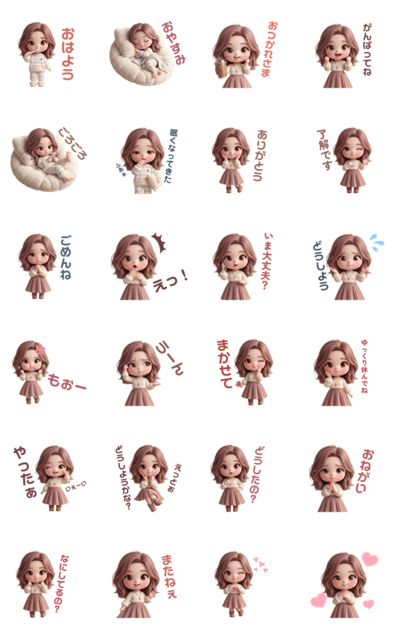 | スタンプ説明 | 3Dのぷにぷに質感がかわいい、淡色系オシャレ女子の日常スタンプです。恋人/カップル/友達/家族/挨拶/リアクション/女の子/AI |
