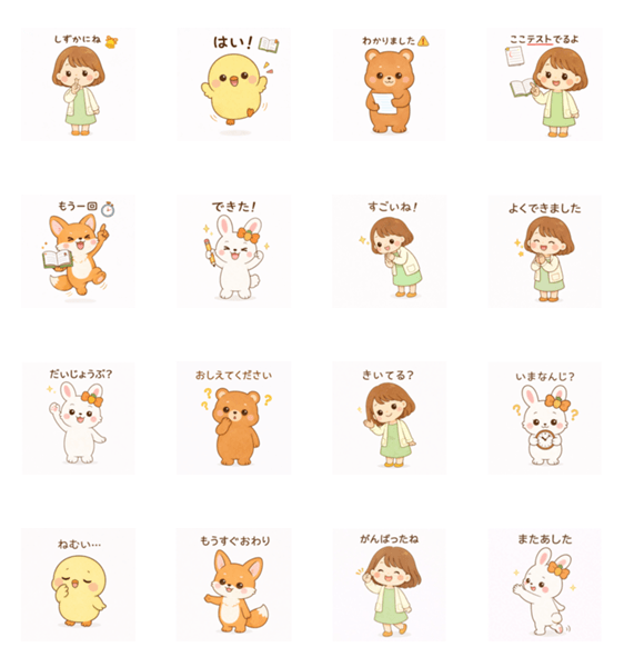 | スタンプ説明 | かわいいうさぎ「もっち」の学校スタンプ先生編。授業、宿題、テストなど学校で使える言葉を収録。先生と生徒のやりとりが楽しい、日常トークでも使いやすいスタンプです。 |