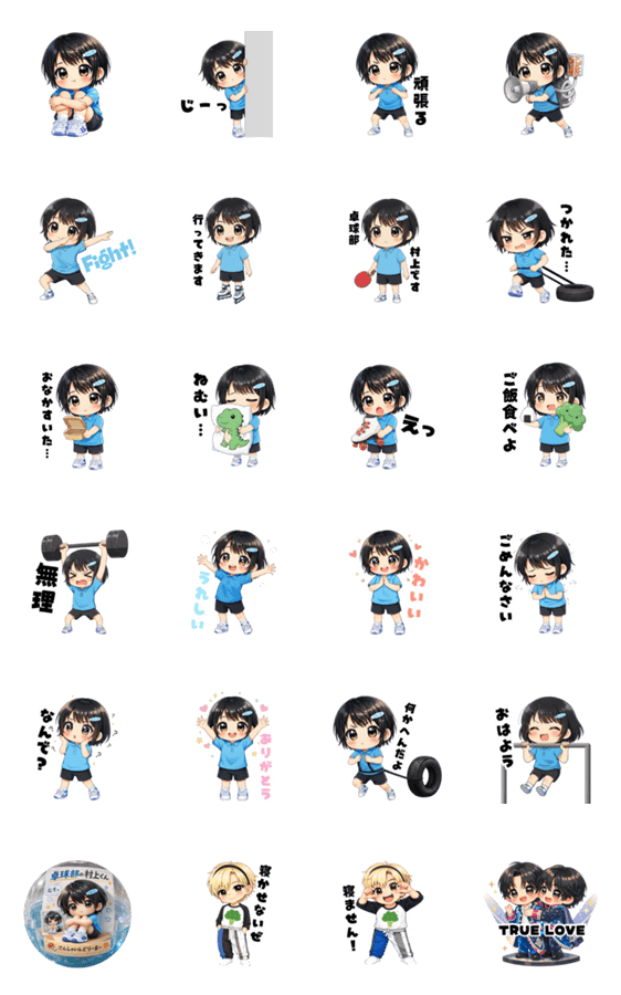 | スタンプ説明 | 卓球部の村上くんが、あなたのトークを盛り上げます。日常会話で使いやすいスタンプが盛りだくさん!アイドルみたいなかわいい男の子!推し活にも!ラウ一郎も! |