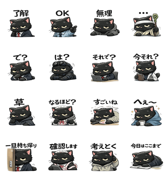 | スタンプ説明 | 感情がちょっとズレてる黒猫です。 返事は短く、表情は虚無。 会話を終わらせたい時や、 何とも言えない空気にどうぞ。 ※圧がありますが、悪意はありません。 |