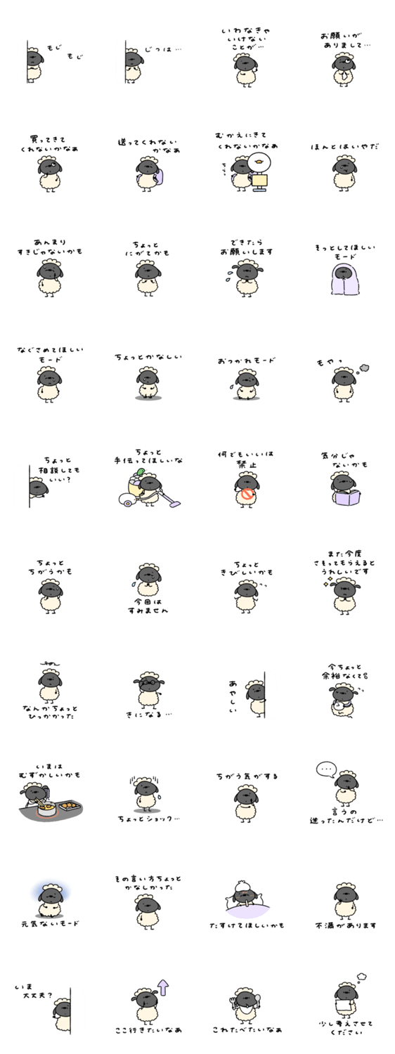 | スタンプ説明 | 言いたくても言いづらいことを代弁してくれるひつじのスタンプです♩ |