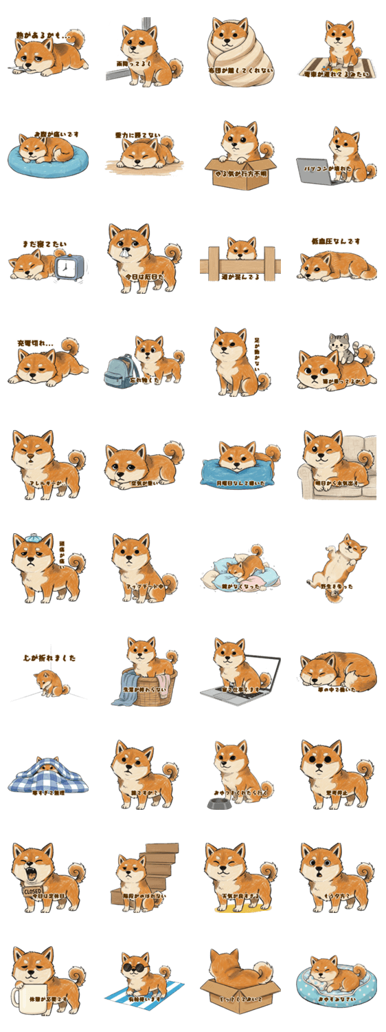 | スタンプ説明 | 仕事に行きたくない気持ちわかります?? 柴犬が代弁します。 仕事、休みたい時に使えます! |