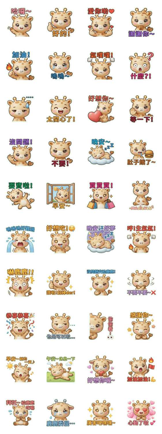| スタンプ説明 | 一番ちっちゃいキリン「マジルル」と4月を楽しもう!こどもの日パーティー、お墓参り、お祭り、地球の日、読書の日にダンスフェスティバルまで♪ |