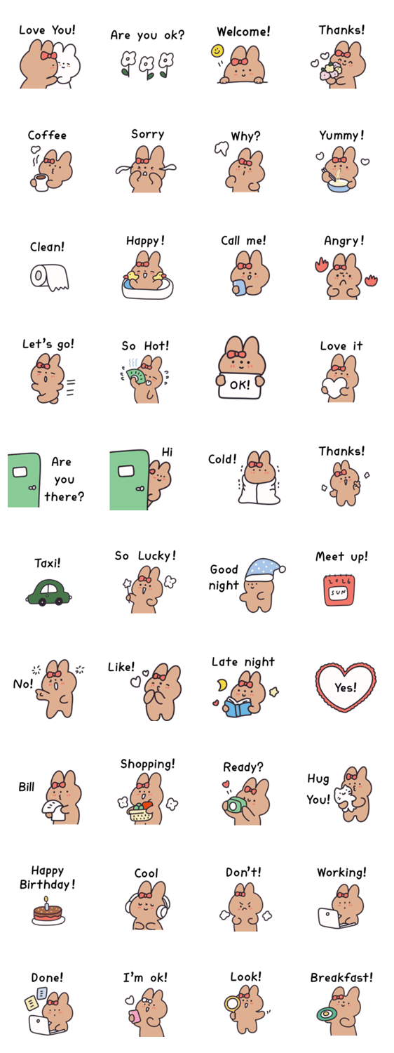 | スタンプ説明 | A warm toned brown bunny that delivers relaxed and easy to use expressions for any chat. |