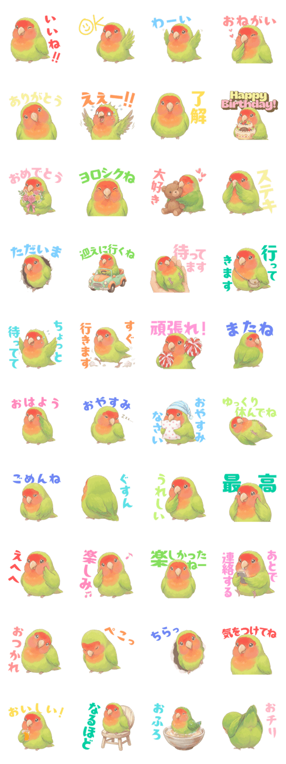 | スタンプ説明 | 可愛いコザクラインコの毎日使えるスタンプです!! |