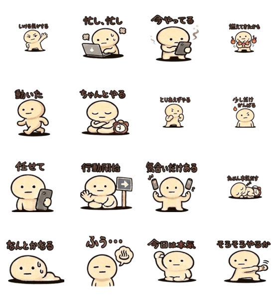 | スタンプ説明 | 表情のない丸いキャラクターが、なぜかいつでもほぼやる気満々。やろうという気持ちはある。ただ、まだその時じゃない、そんな時にぴったり。 |