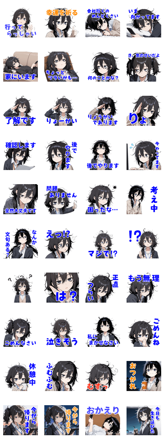 | スタンプ説明 | 働きすぎて寝不足なツインテール女子の日常スタンプ第2弾です。 おつかれなどの毎日使える言葉に加え、今日も生き延びた・もう無理、などの共感できるセリフを収録。 |