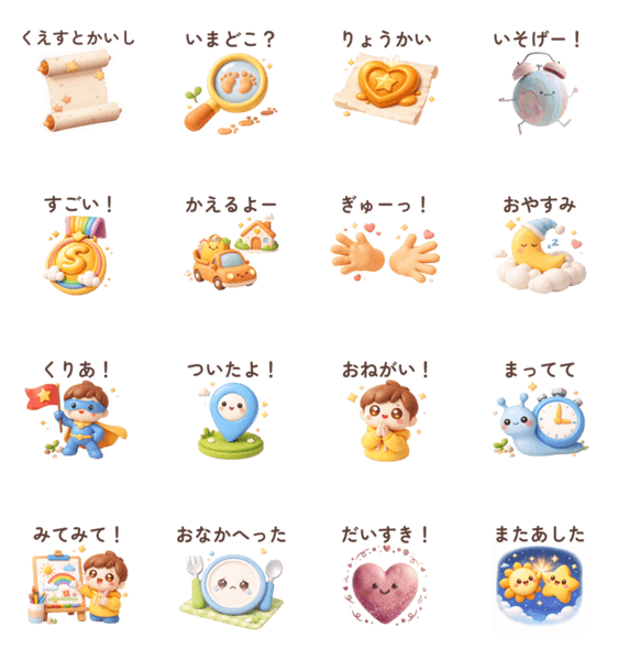 | スタンプ説明 | 小言を魔法に変える親子スタンプ!親はギルドマスター、子は勇者。3D粘土の温かいデザインで宿題や片付けが冒険に!親子で使えるハイブリッド版。 |