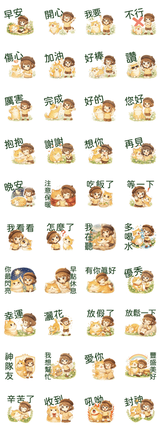 | スタンプ説明 | Shin and her fluffy cat Mocha bring warm, practical greetings to brighten your chats. |