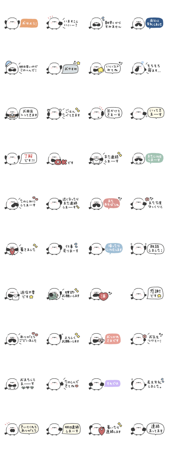 | スタンプ説明 | 一つあると便利なかわいいシマエナガのスタンプです。 シマエナガ/大人可愛い/シンプル/あいさつ/吹き出し/毎日使える |
